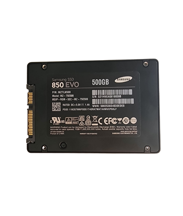 Disco estado solido de alto rendimiento marca Samsung, serie 850 EVO, ideal para mejorar la velocidad de cualquier computadora de escritorio o notebook con conexión SATA. El modelo exacto es MZ-75E500.